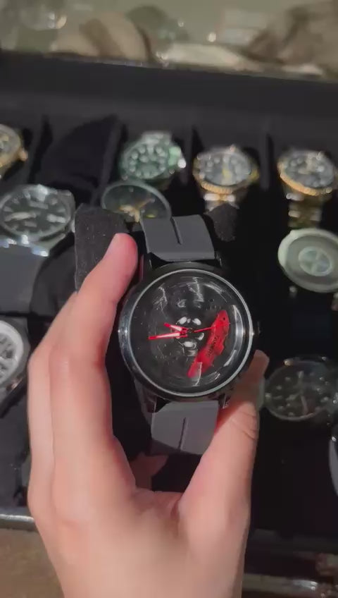🔥 Automotive-Inspired Dial: The skeletonized face mirrors a performance car wheel rim with ventilated brake disc detailing — a symbol of power and precision.